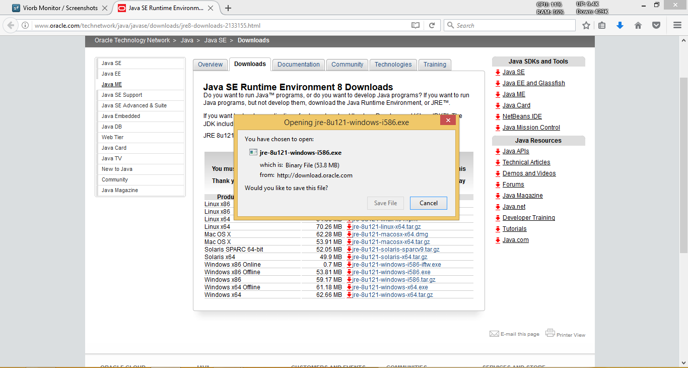 b. Download JRE by clicking